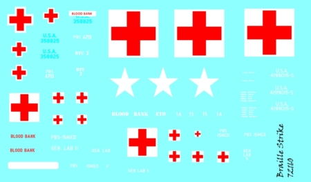 Planche de décalcomanies contenant les décorations pour 4 véhicules de transport de sang: