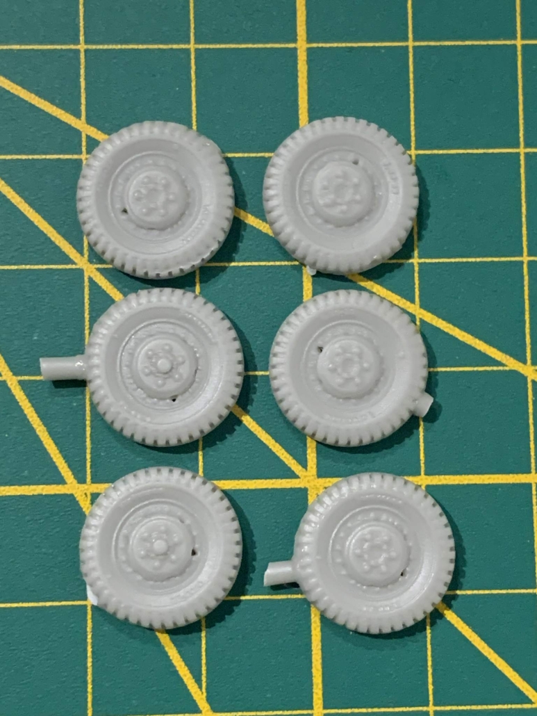 Jeu de 6 roues en résine à l’échelle 1/72ème pour voitures blindées M8 et M20 avec profil mud and snow.